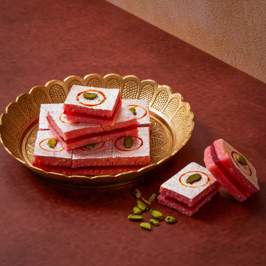 Kesar Pista Roll is a royal mithai made with rich cashew and pistachio filling, delicately...