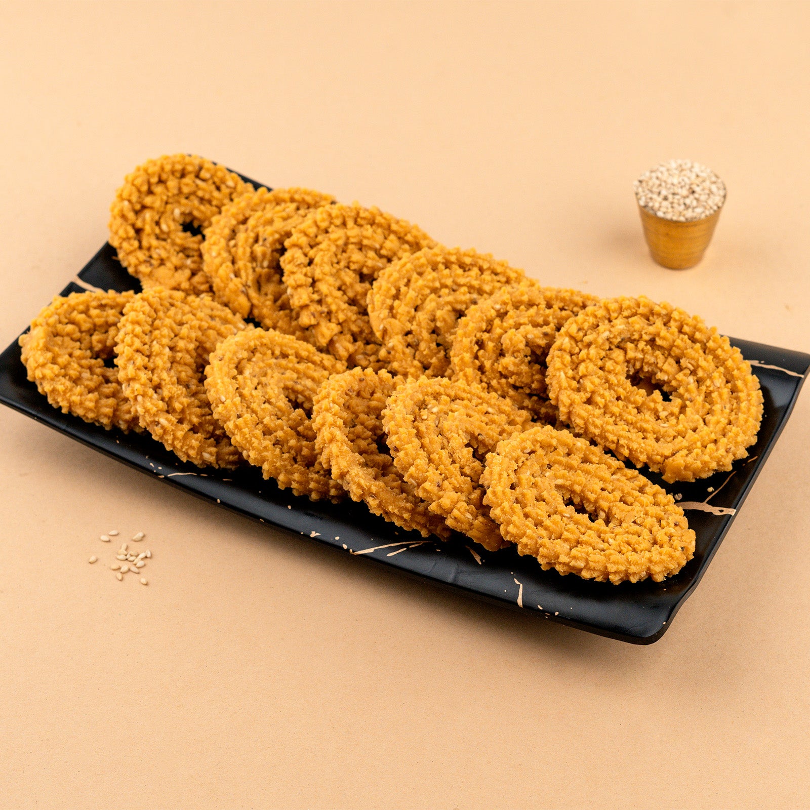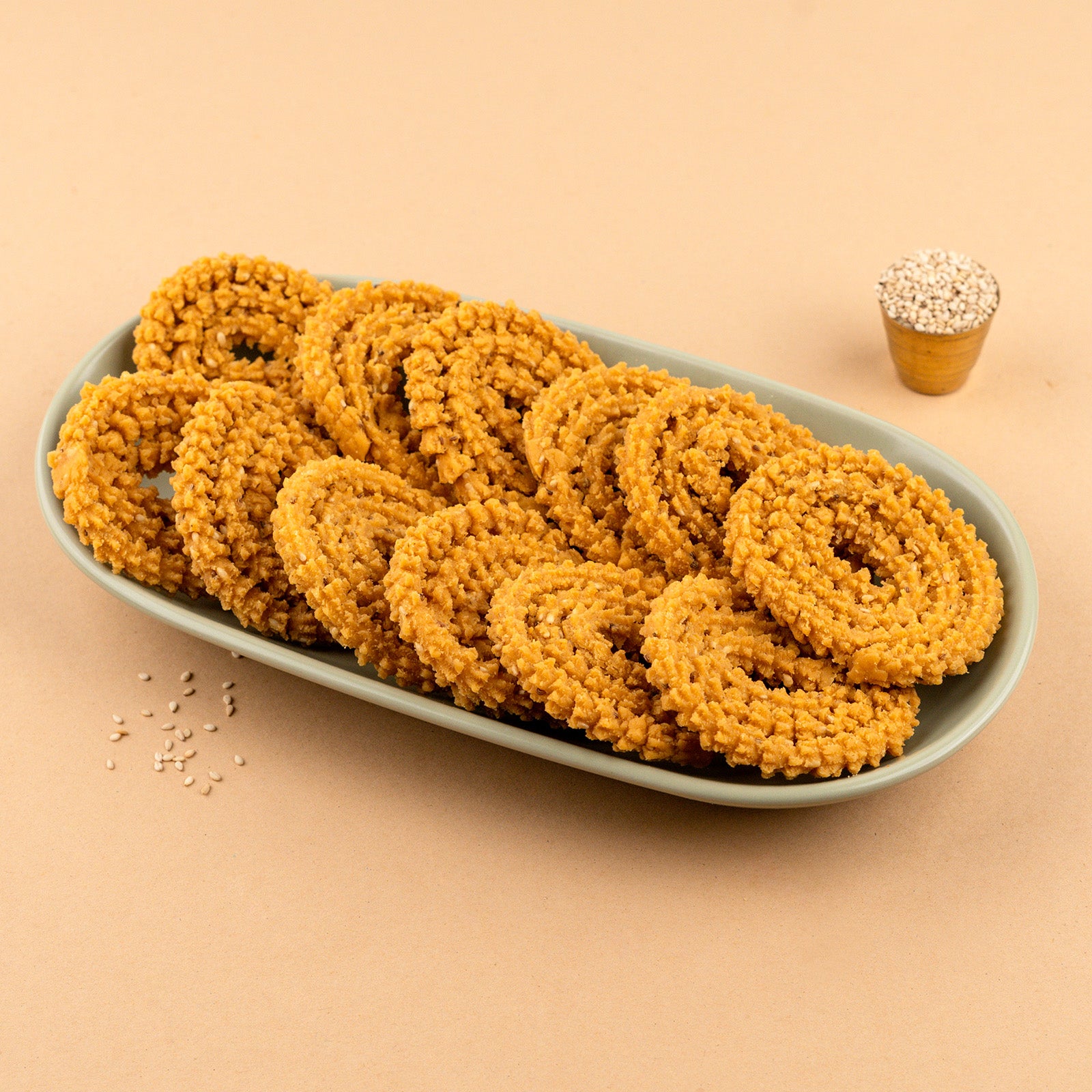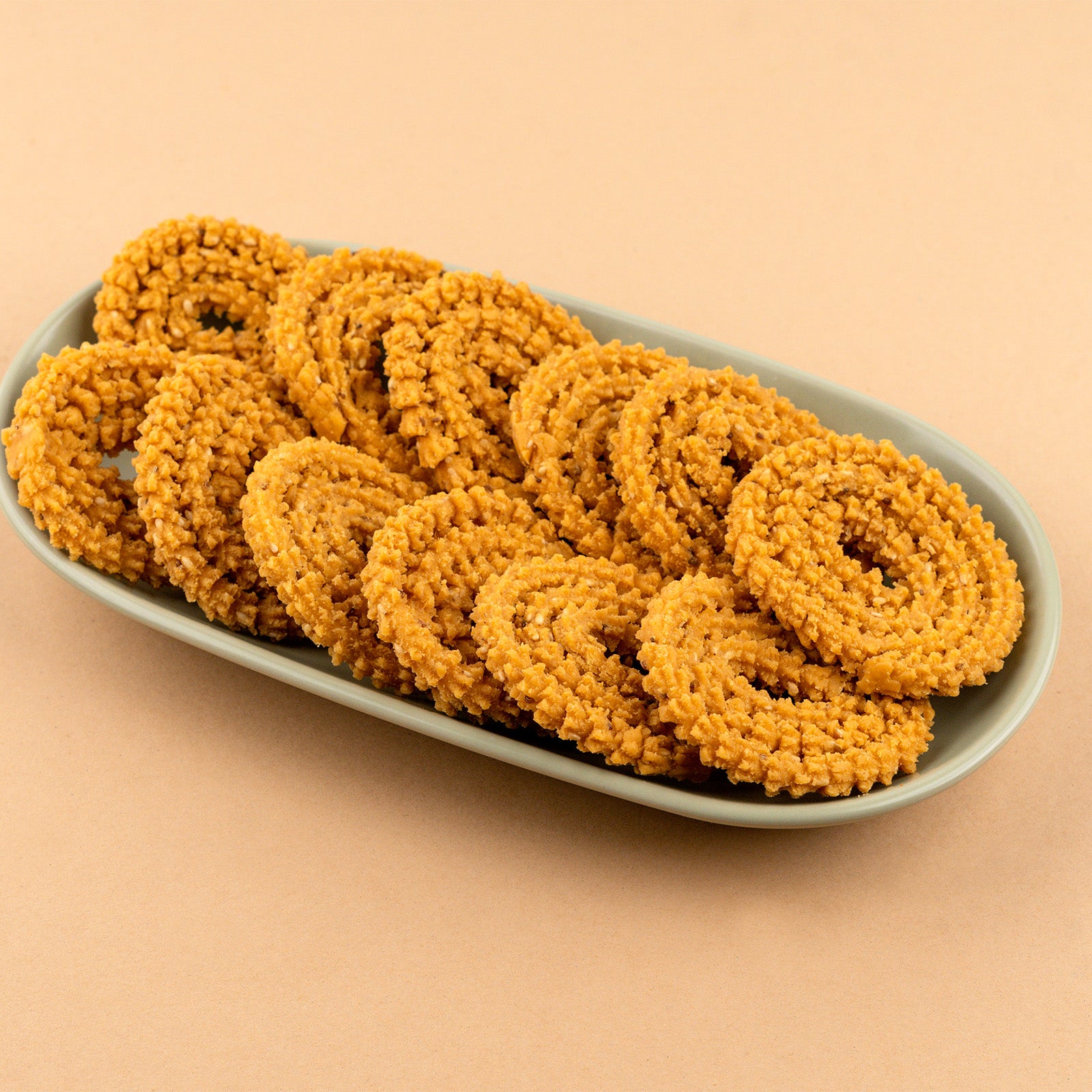 Delight your taste buds with our Bhajani Chakli! Made with a unique blend of spices and flours, our Bhajani Chakli is a crispy and savory snack that will satisfy your cravings. Perfect for parties, snacking, or gifting to your loved ones. Try it now and experience the authentic flavors of India!