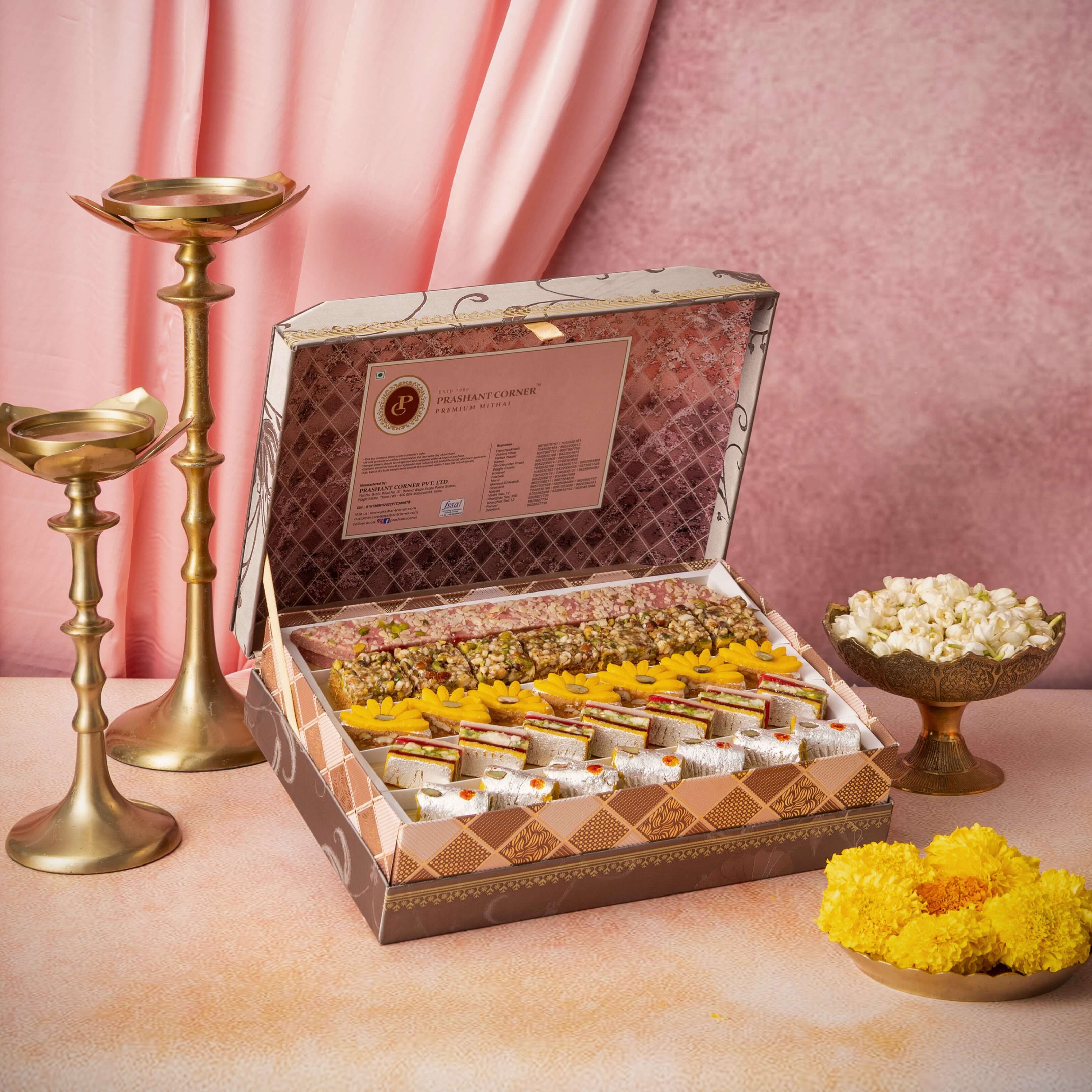 Indulge in timeless luxury with our Premium Mithai Box, a handcrafted selection of our finest traditional sweets. Thoughtfully curated with an assortment of rich, melt-in-your-mouth delicacies made from premium ingredients, each piece reflects our legacy of purity, craftsmanship, and authentic taste. Elegantly packed and perfect for gifting, this box is a celebration of sweetness, tradition, and togetherness. Ideal for festive occasions.