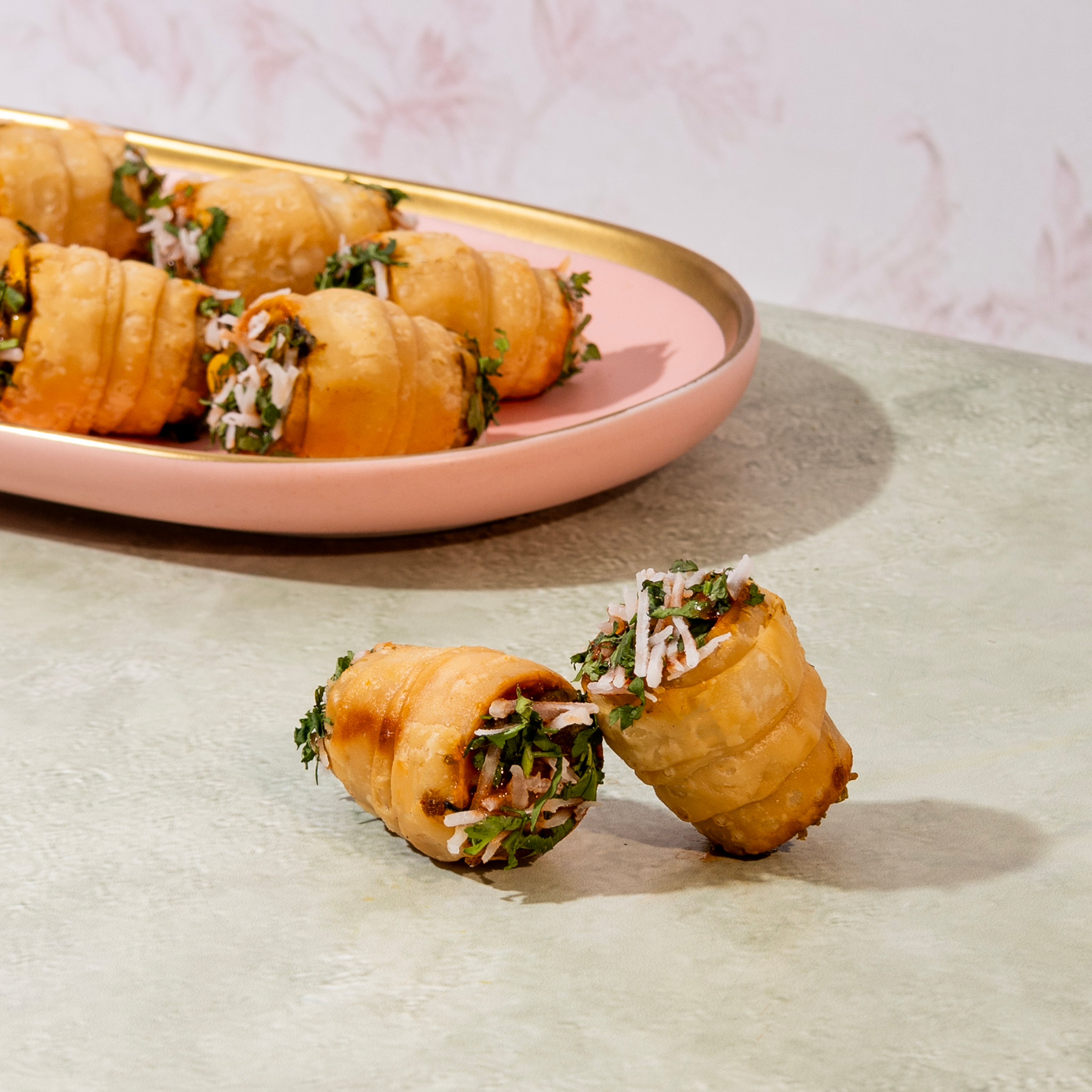 Our Corn Samosa is a delectable fusion snack featuring a shatteringly crisp, golden pastry cone stuffed with a vibrant medley of sweet corn kernels, and aromatic spices. Each bite offers a satisfying contrast between the crunchy exterior and the juicy, savory-sweet filling, enhanced by a hint of fresh Peas, Bananas and green chilies. This snack is the ultimate Party Starter, designed to be the star of any lively get-together, movie night, or festive platter, offering a modern, addictive flavor profile.