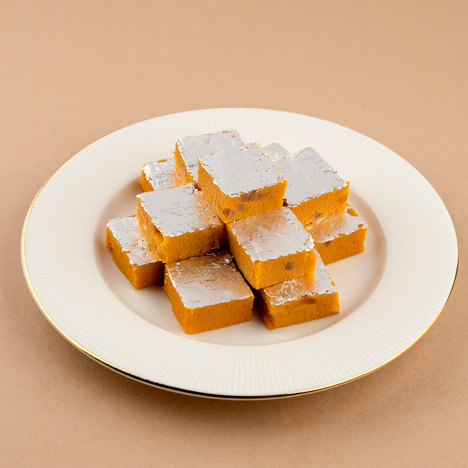 Indulge in the tropical sweetness of Mango Barfi. Made with ripe mangoes, this delectable Indian sweet is a perfect blend of fruity flavors and creamy texture. Each bite is a burst of tropical goodness, making Mango Barfi a delight for your taste buds. Perfect for celebrations or as a sweet treat anytime.