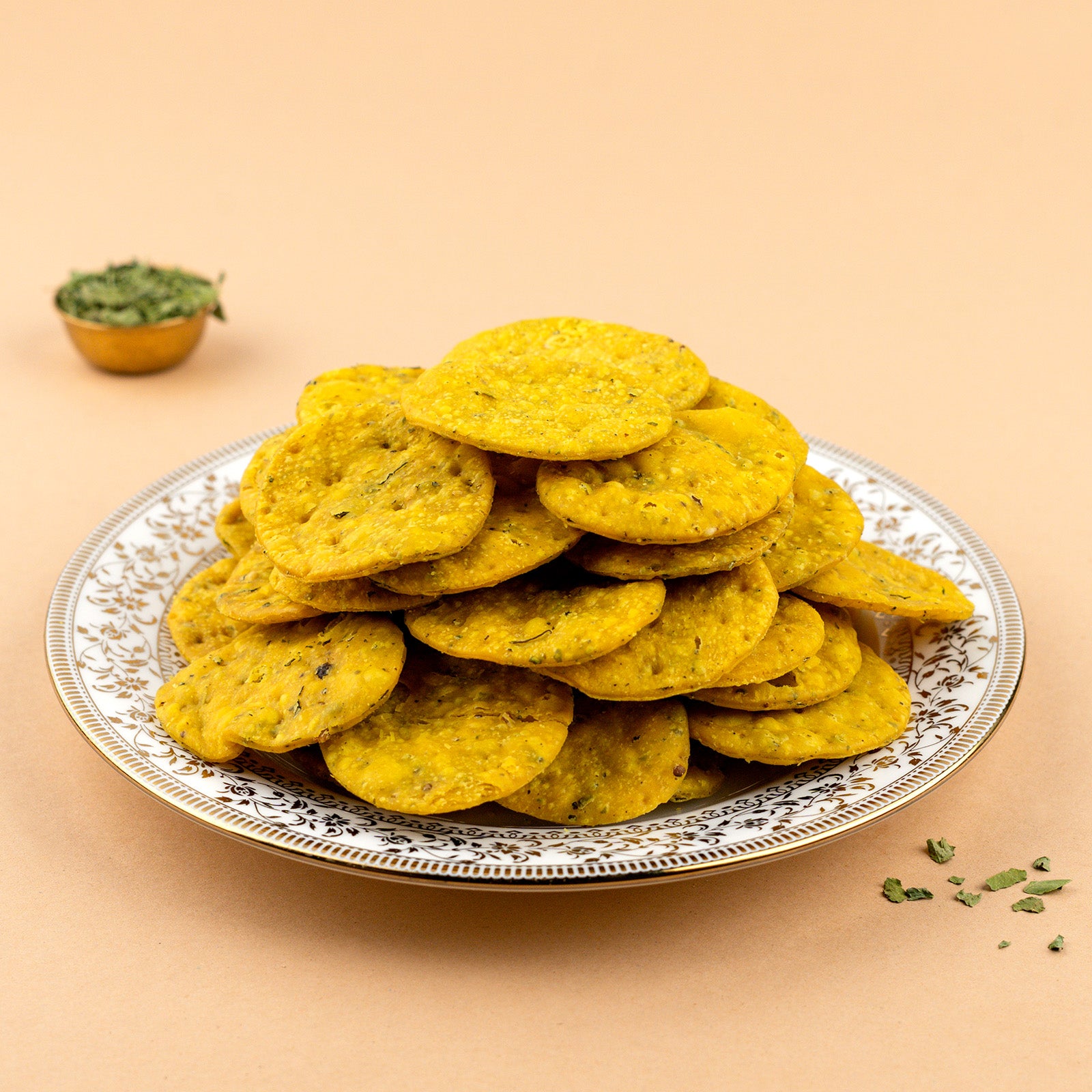 Indulge in traditional Indian cuisine with our Methi Puri. The perfect blend of methi and spices creates a savory, crispy and flavorful puri. Enjoy it as a snack or part of your meal, either way, you won't be disappointed. Try now!